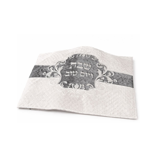 כיסוי חלה לבן וכסוף קטיפה