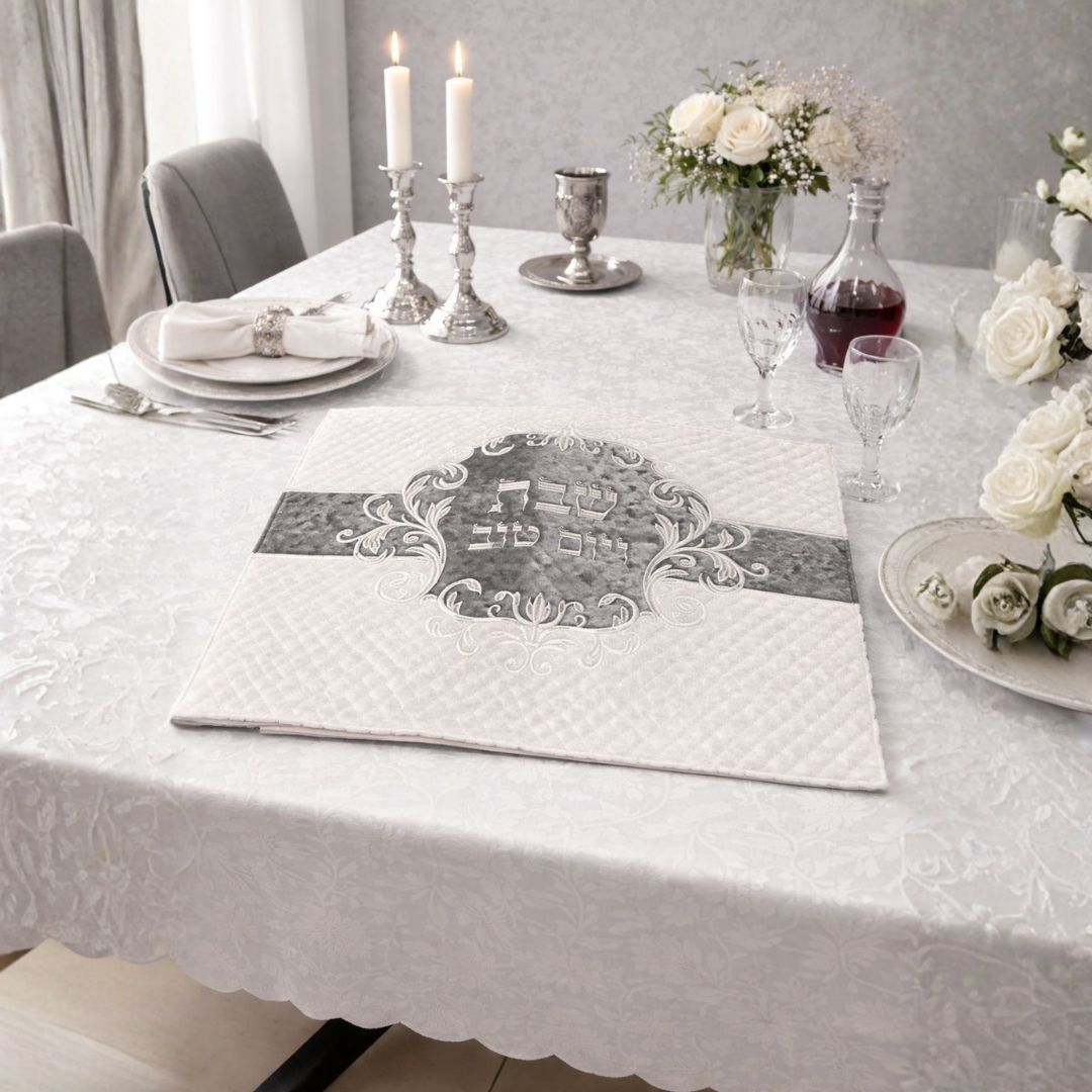 כיסוי חלה איכותי מקטיפה עבה עם תפירות ורקמה בכיתוב ״שבת ויום טוב״