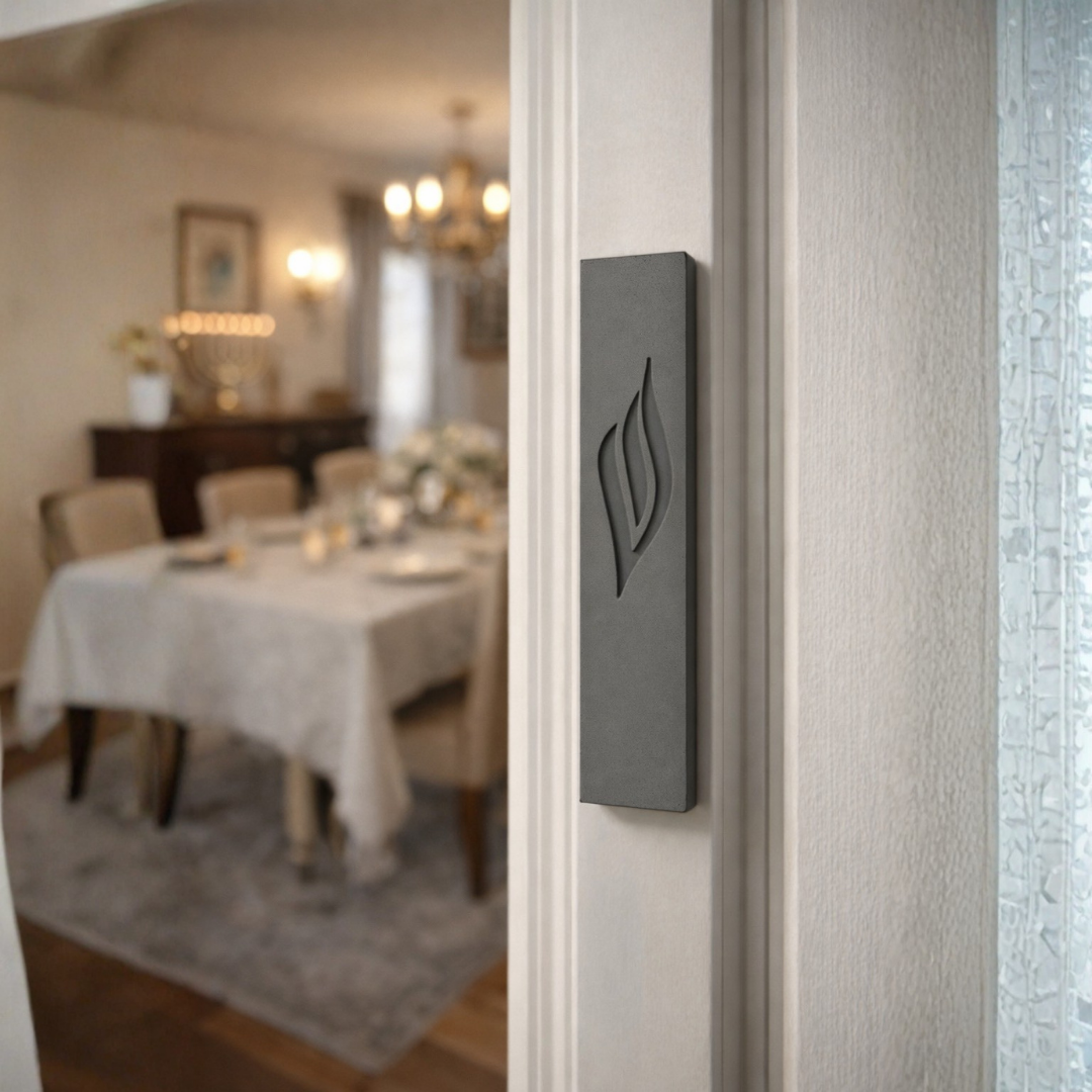 מזוזה בעיצוב מינימליסטי ונקי, עשויה סמנט בטון איכותי בגוון אפור אלגנטי. משתלבת בצורה טבעית בכל פתח ומעניקה תחושת קדושה ויוקרה מודרנית.
