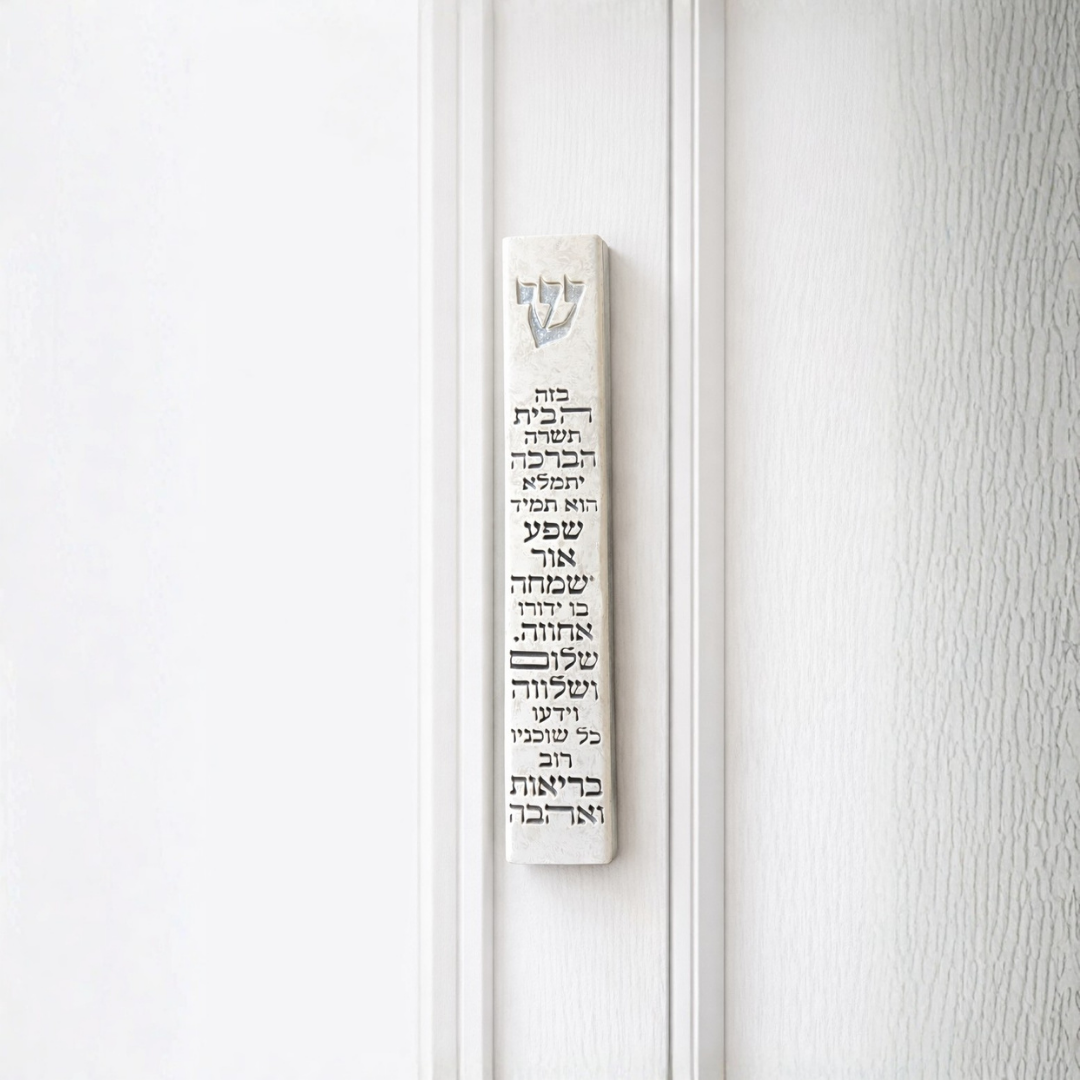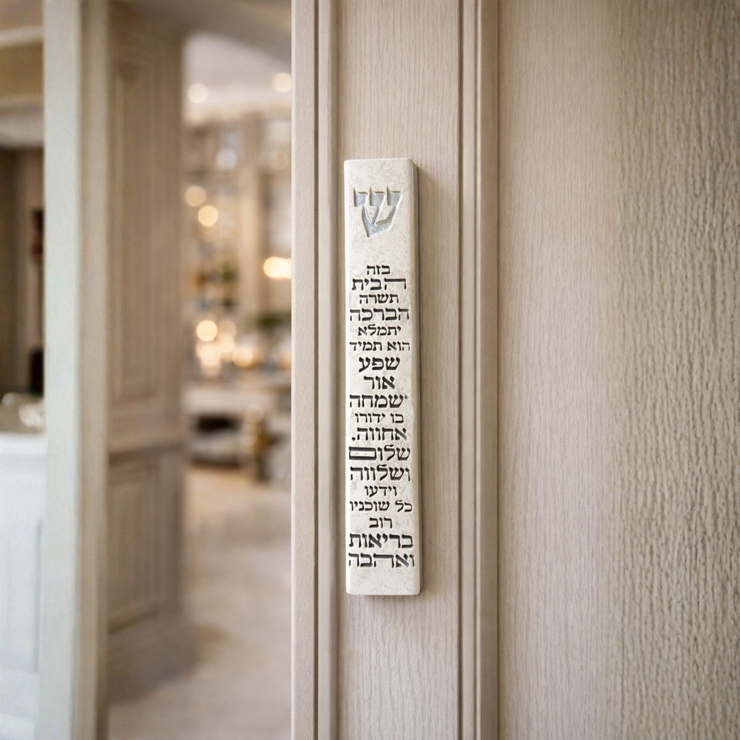 הכתיבה נעשתה על ידי סופר סת"ם מוסמך, בעל שם ותעודת מומחה, המקפיד על קלה כבחמורה מתוך יראת שמיים אמיתית. זהו שילוב נדיר בין הקפדה הלכתית מחמירה לבין אסתטיקה עוצרת נשימה. הבחירה המושלמת למי שמחפש לשלב בביתו שמירה עליונה עם יוקרה שקטה ואיכותית.