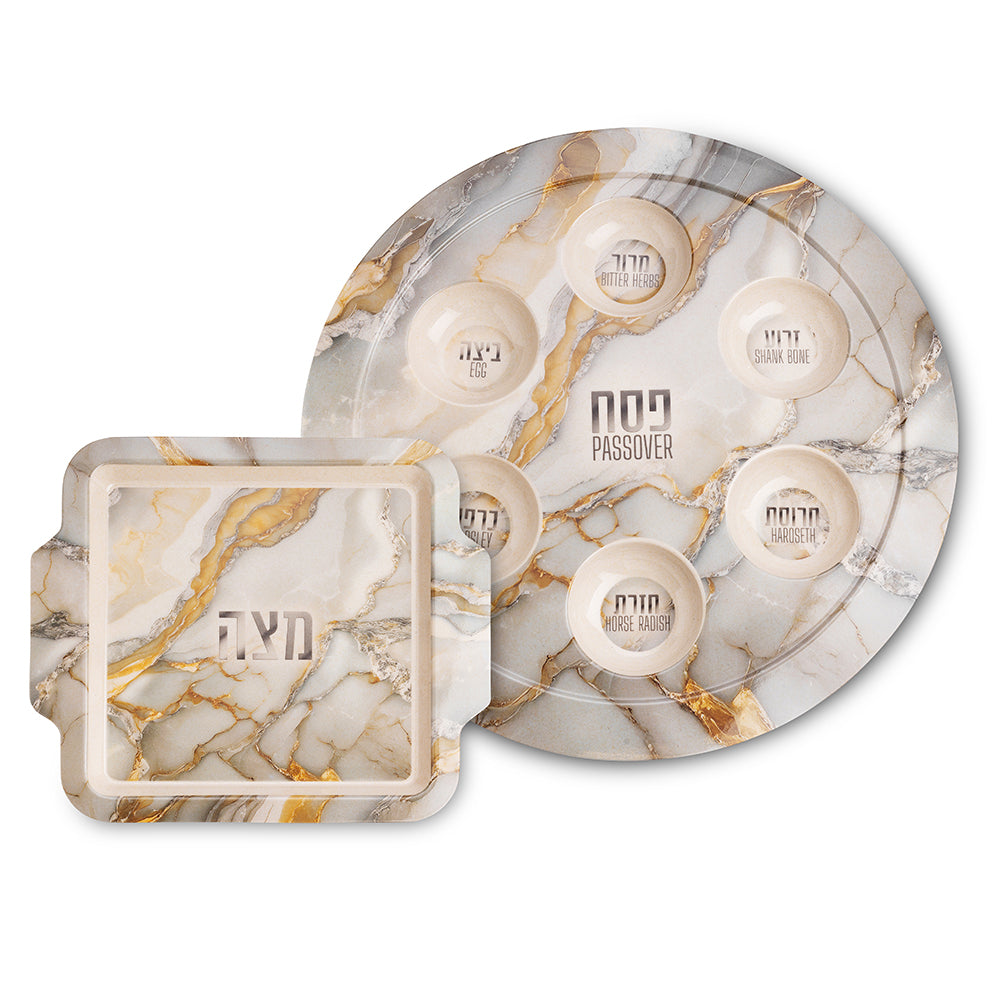 סט פסח שיש עם זהב