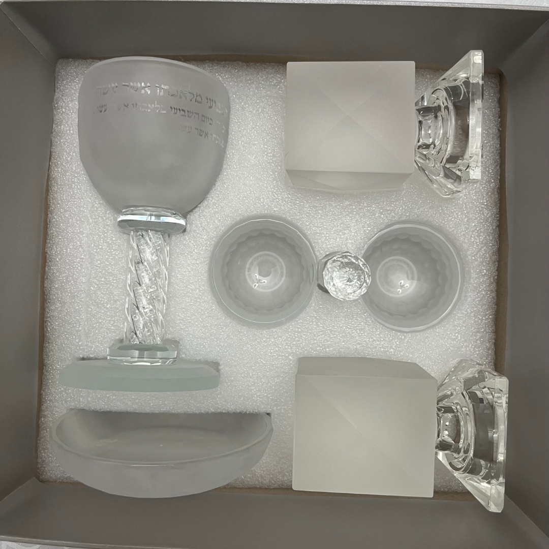 הסט שלנו מגיע עם זוג פמוטים, כוס קידוש ומלחיה,